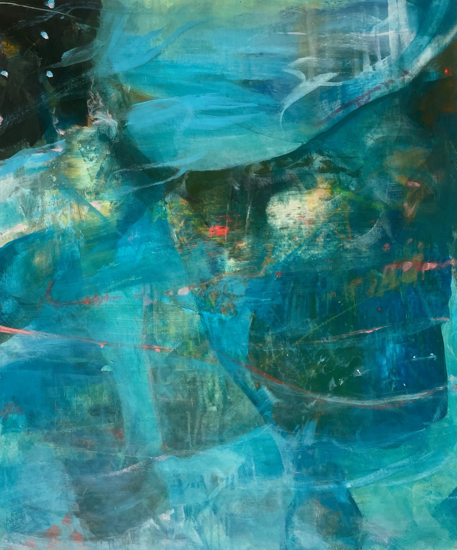 Dabei folgen ihre Bilder keiner vorgezeichneten Komposition. Jedes Werk beginnt mit dem ersten Farbauftrag – ähnlich einem Spaziergang ohne festen Plan. Schritt für Schritt entwickelt sich aus Farbe, Textur, Struktur und Raum ein Bild, das ebenso offen bleibt wie das Leben selbst.