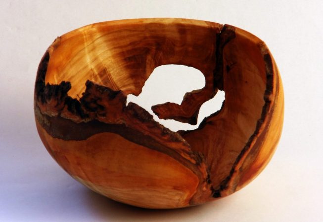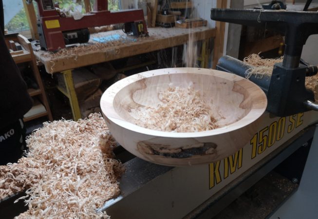 Detlev dreht Gebrauchsgegenstände oder auch kleine Skulpturen aus Holz.