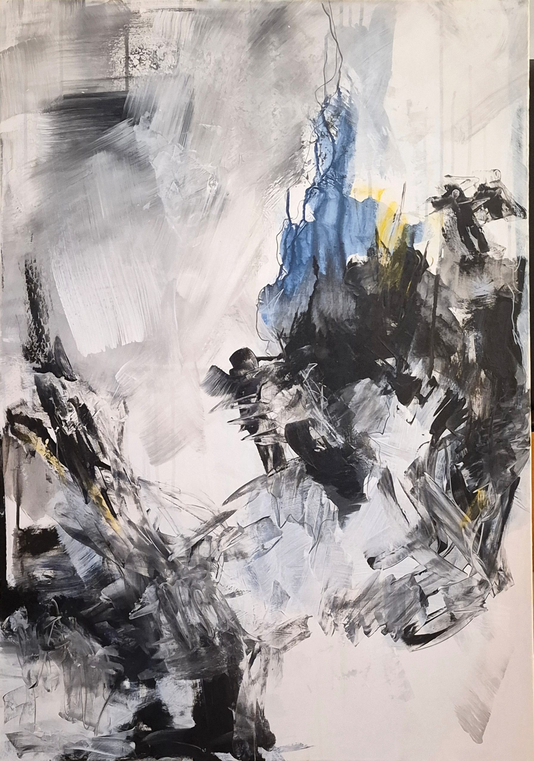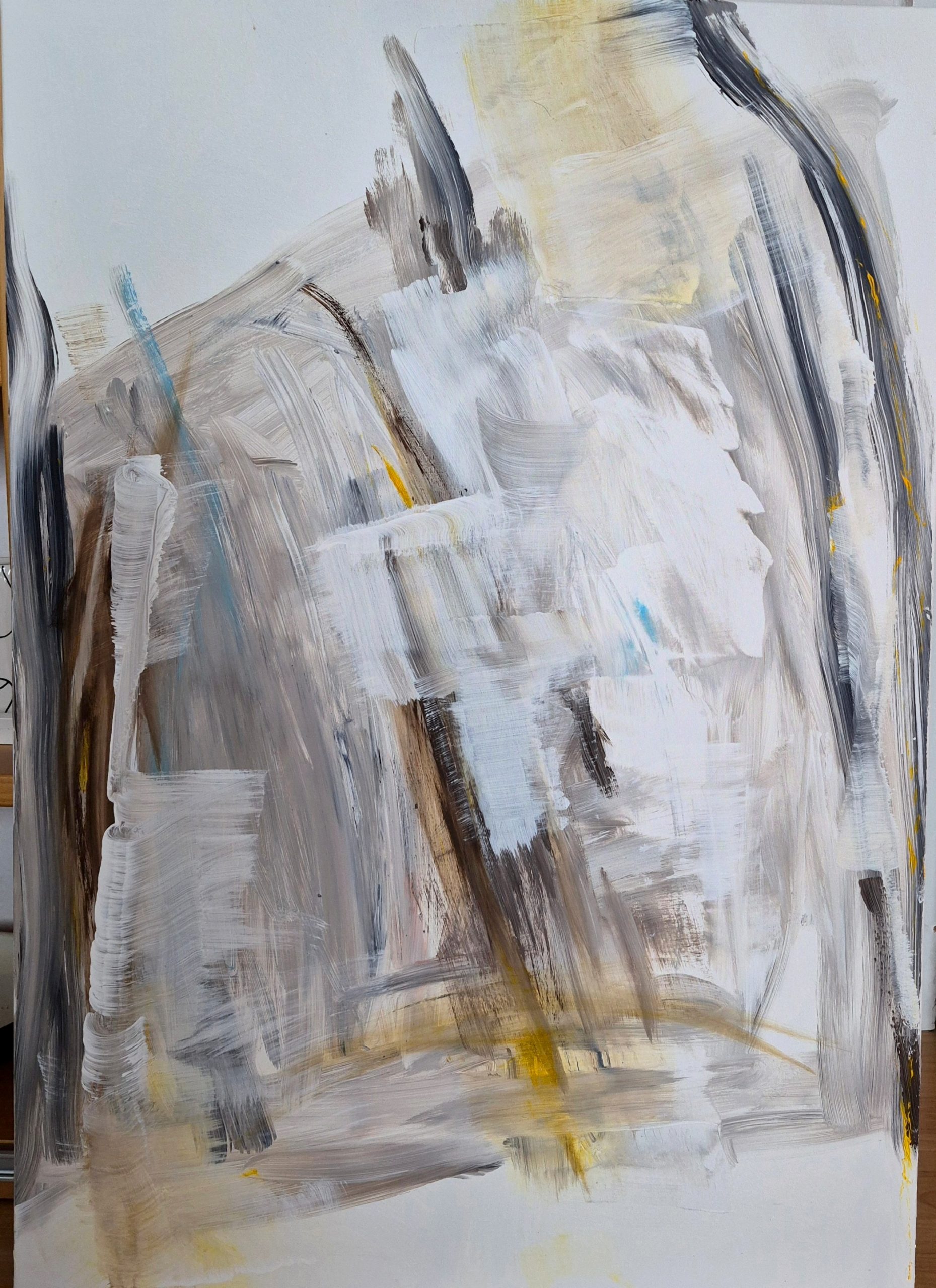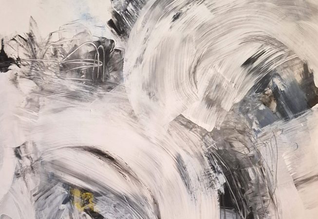 „Meine überwiegend großformatigen abstrakten Gemälde sind in Acryl mit unterschiedlichen Mischtechniken entstanden. Die Entwicklung eines Bildes überlasse ich meinem spontanen Gefühl für Form und Farbe. Eine Komposition kann viele Schichten beinhalten, so dass für den Betrachter Nebensächlichkeiten zur Hauptsache werden können wenn das Auge seine Fantasie beflügelt.”