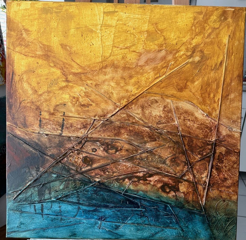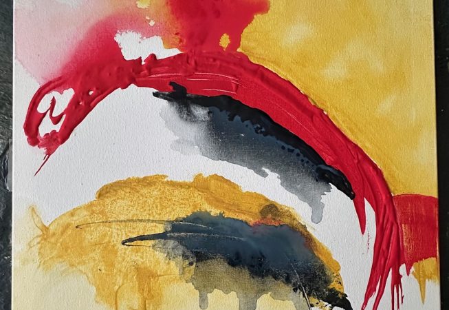 1. Schichtung von Farbstrukturen: Gorgs arbeitet in zahlreichen transparenten und deckenden Farblagen. Jede Schicht verändert das Gesamtbild, so dass der Betrachter in die Tiefe des Farbgefüges eintauchen kann.