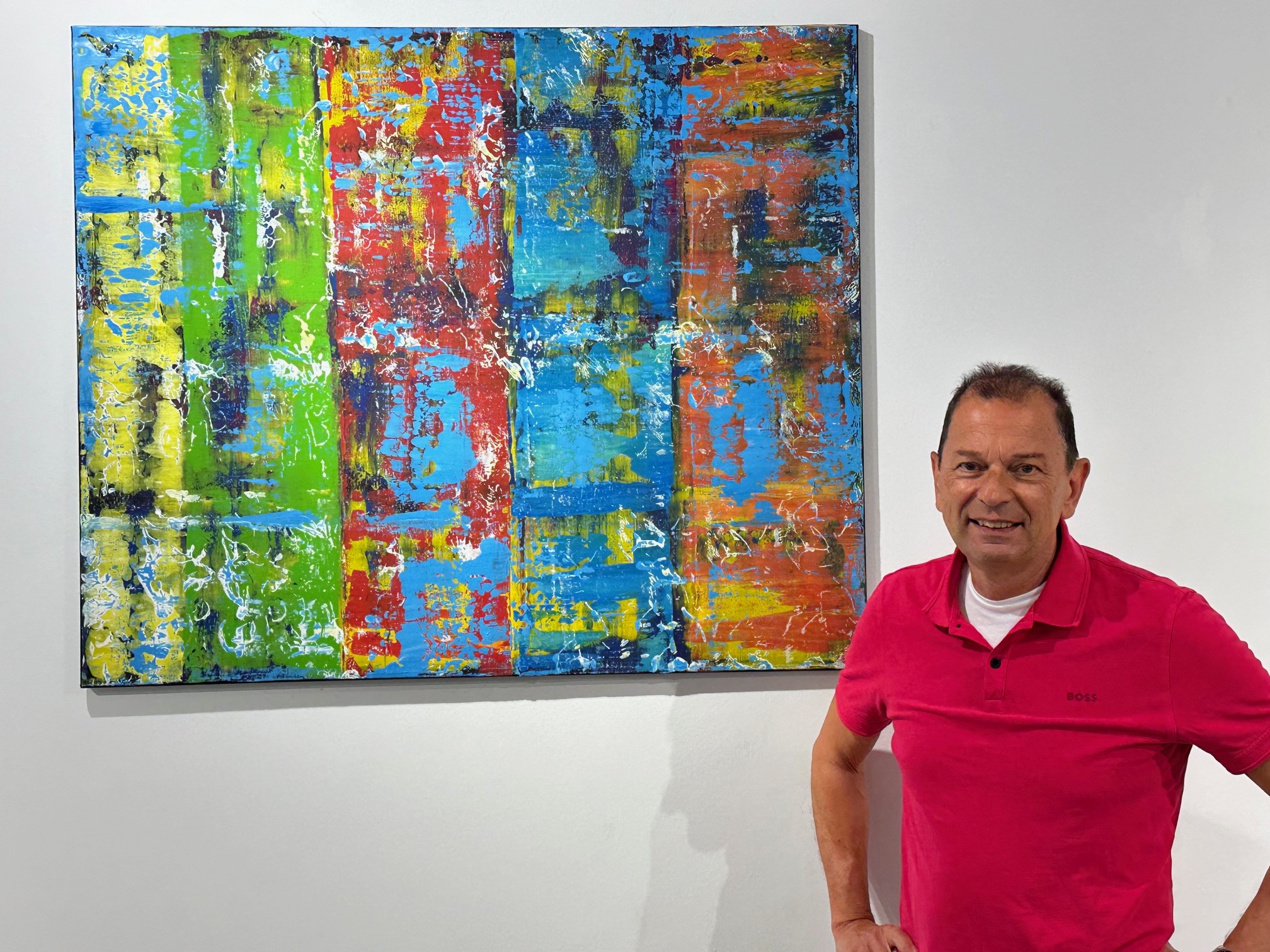 1. Schichtung von Farbstrukturen: Gorgs arbeitet in zahlreichen transparenten und deckenden Farblagen. Jede Schicht verändert das Gesamtbild, so dass der Betrachter in die Tiefe des Farbgefüges eintauchen kann.