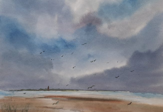 da uns dein Aquarell-Bild: Angler im Watt seit einigen Jahrzehnten in unserem Haus begleitet, freue ich mich über deine neueren Werke. Die Motive haben sich in Form und Farbe verändert und doch bleibt die einfühlsame Darstellung, die den Menschen vor dem Bild berührt.