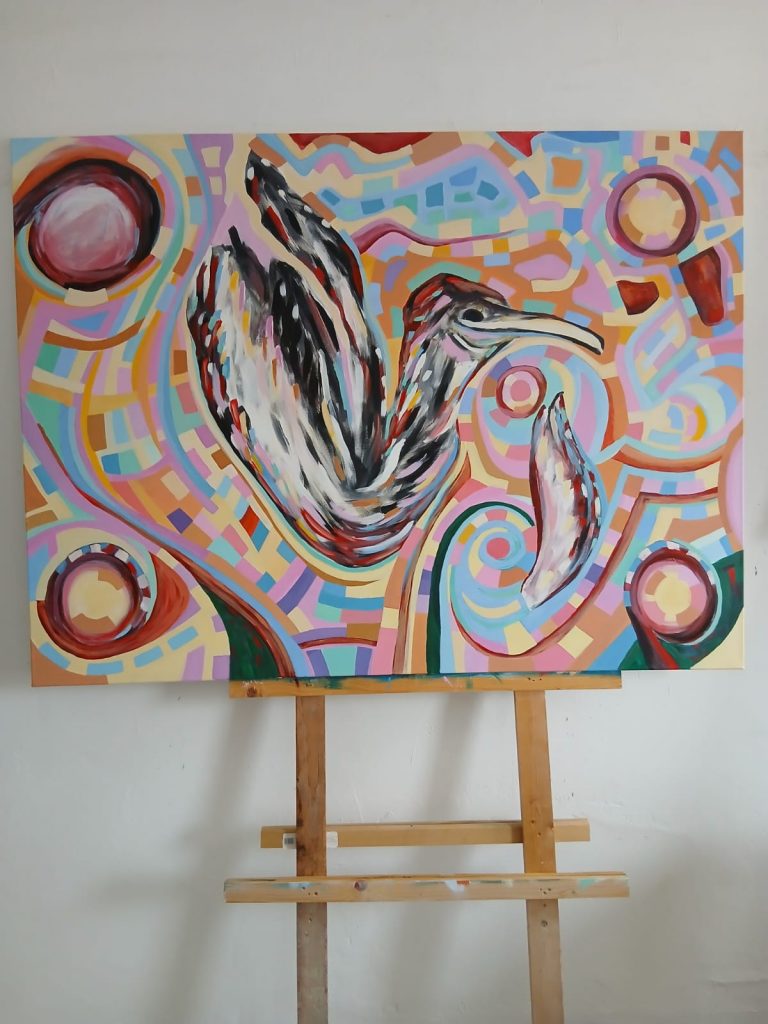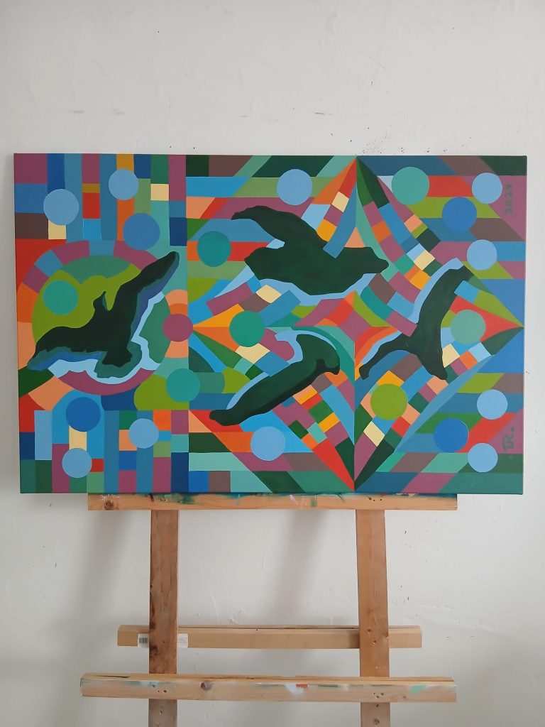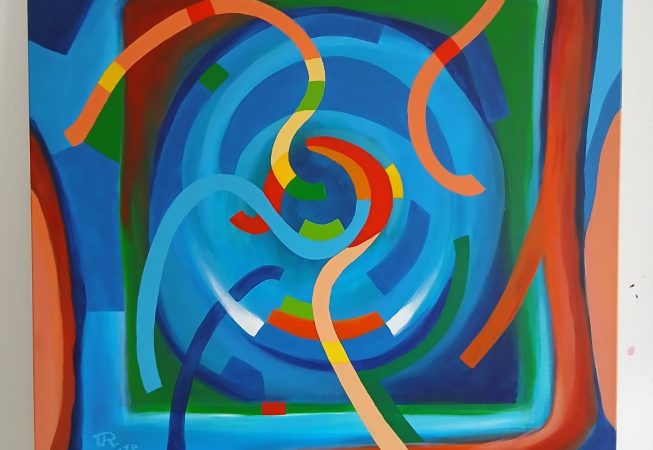 Meine Malerei vereint Abstraktion mit erkennbaren Bildinhalten. Die inhaltliche Aussage führt zu den Bildmotiven, doch die eigentliche Kraft entfaltet sich durch Farbe und Form auf der Fläche.